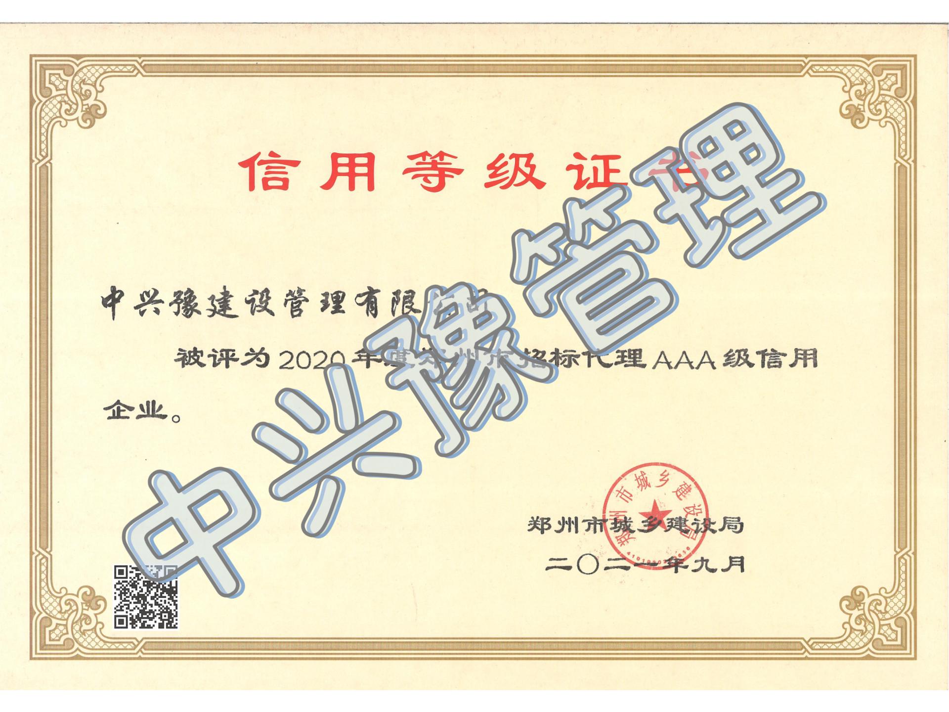 2020年度招標(biāo)代理AAA信用等級(jí)-公司榮譽(yù)