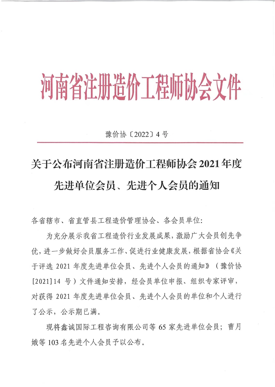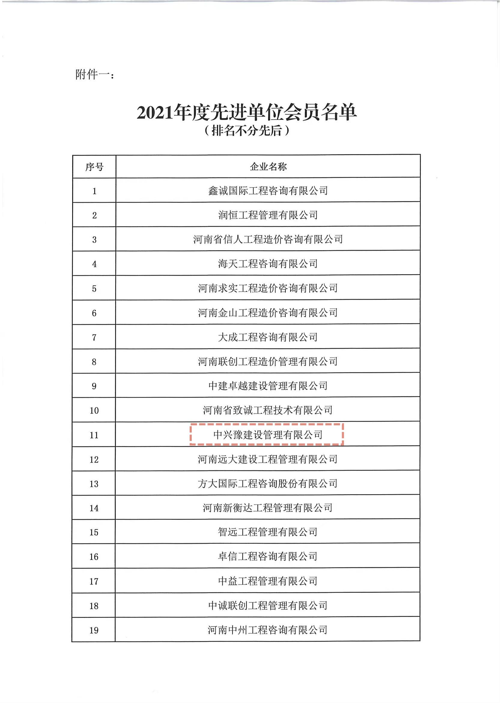 喜報(bào)|中興豫榮獲“河南省注冊(cè)造價(jià)工程師協(xié)會(huì)2021年度先進(jìn)單位會(huì)員”榮譽(yù)稱號(hào)