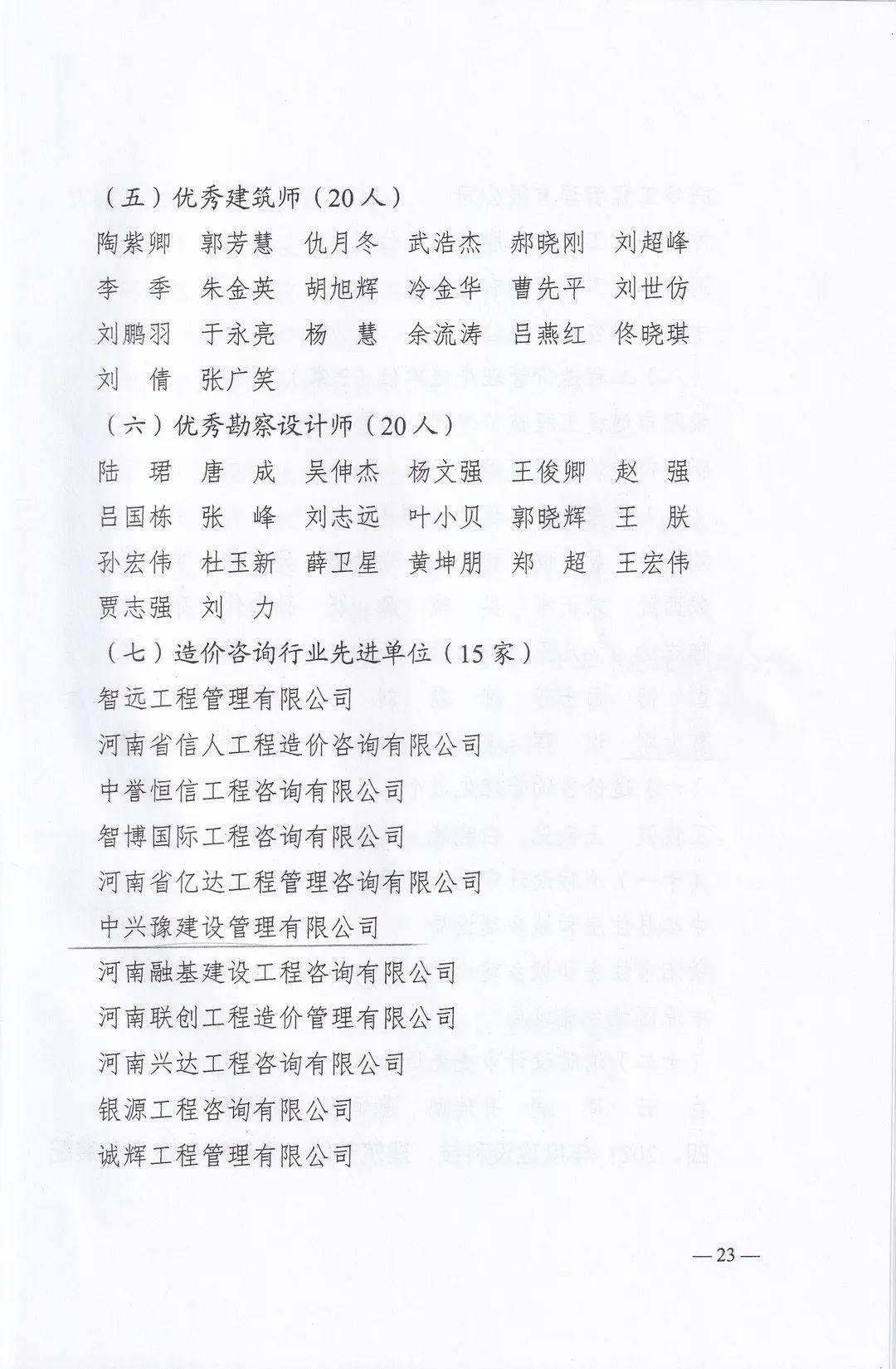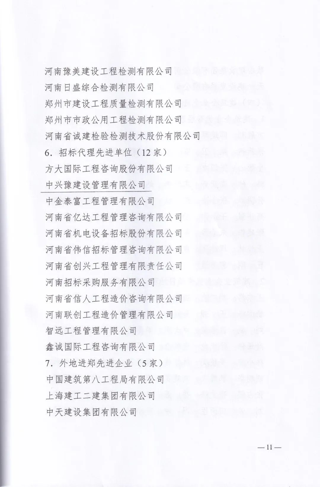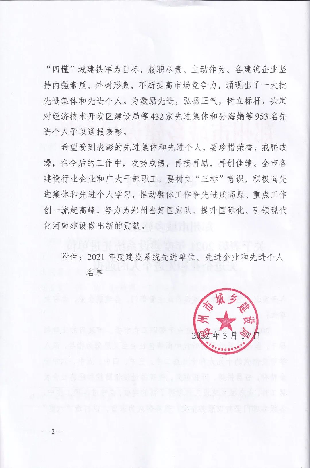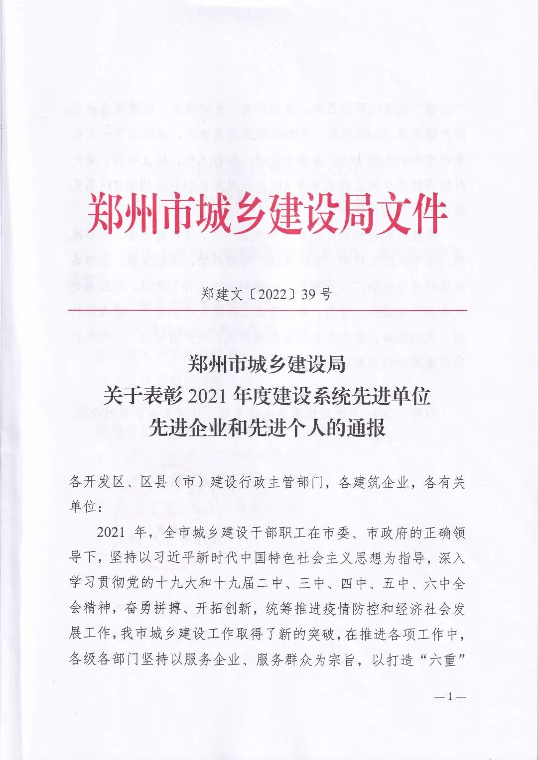 近日,鄭州市城鄉(xiāng)建設(shè)局發(fā)布了《關(guān)于表彰2021年度建設(shè)系統(tǒng)先進(jìn)單位先進(jìn)企業(yè)和先進(jìn)個(gè)人的通報(bào)》,中興豫建設(shè)管理有限公司被評(píng)為“2021年度招標(biāo)代理先進(jìn)單位”、“2021年度造價(jià)咨詢(xún)行業(yè)先進(jìn)單位”,我公司員工韋曉東被評(píng)為“優(yōu)秀總監(jiān)”、劉東生被評(píng)為“優(yōu)秀注冊(cè)監(jiān)理工程師”、賈世軍被評(píng)為“優(yōu)秀造價(jià)工程師”。