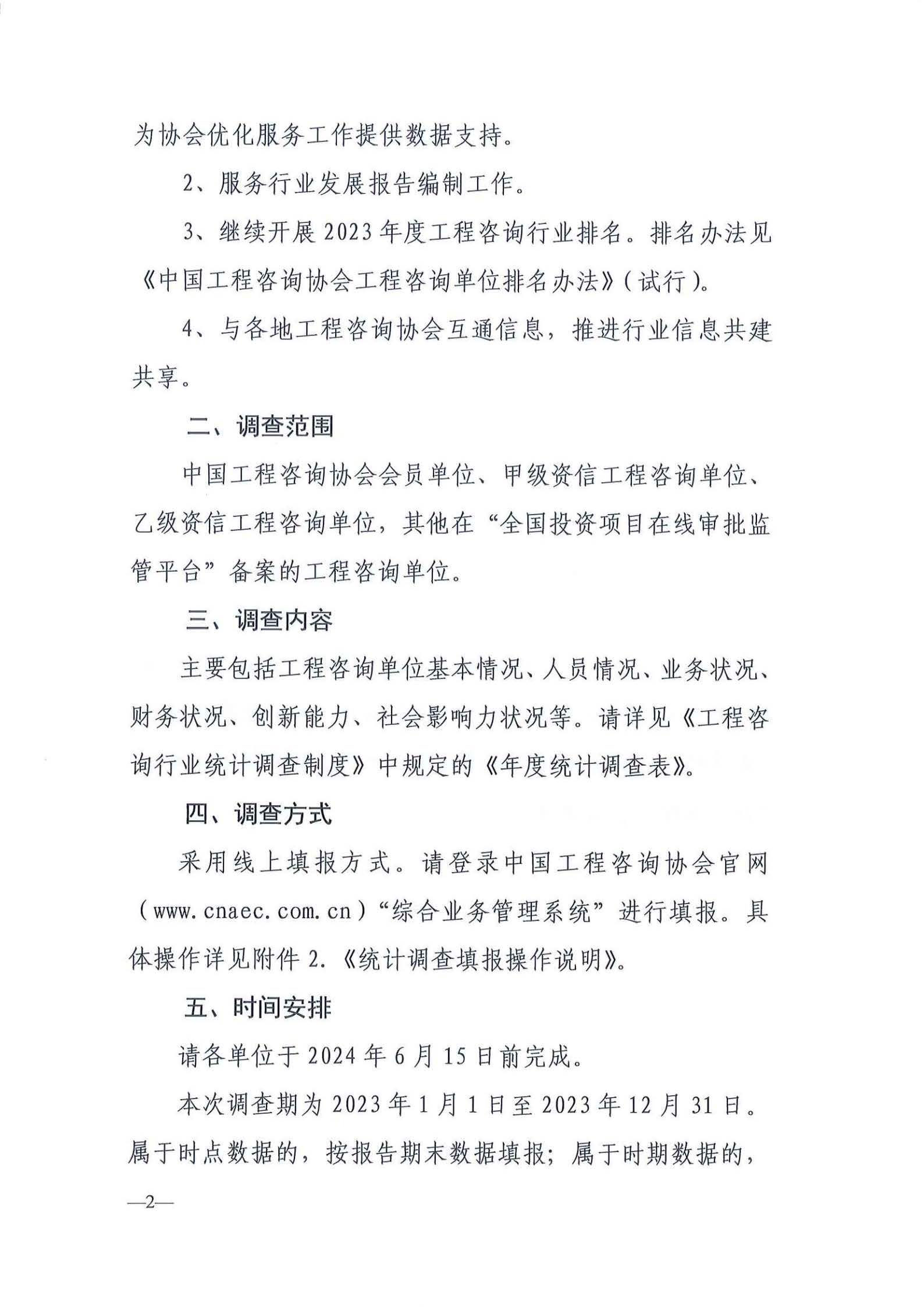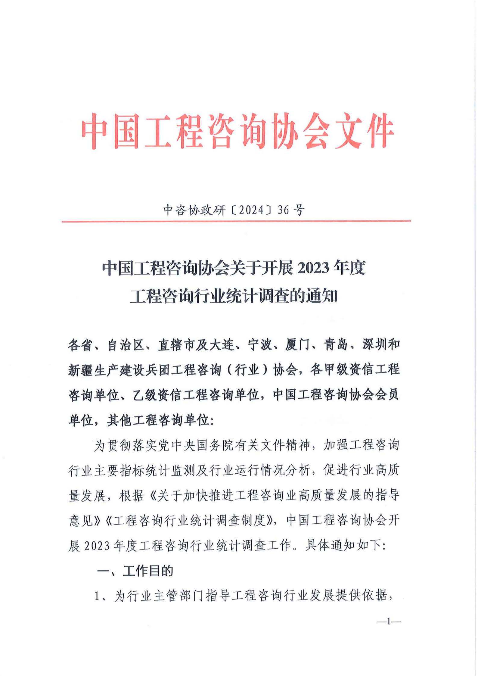 中國(guó)工程咨詢(xún)協(xié)會(huì)關(guān)于開(kāi)展2023年度工程咨詢(xún)行業(yè)統(tǒng)計(jì)調(diào)查的通知