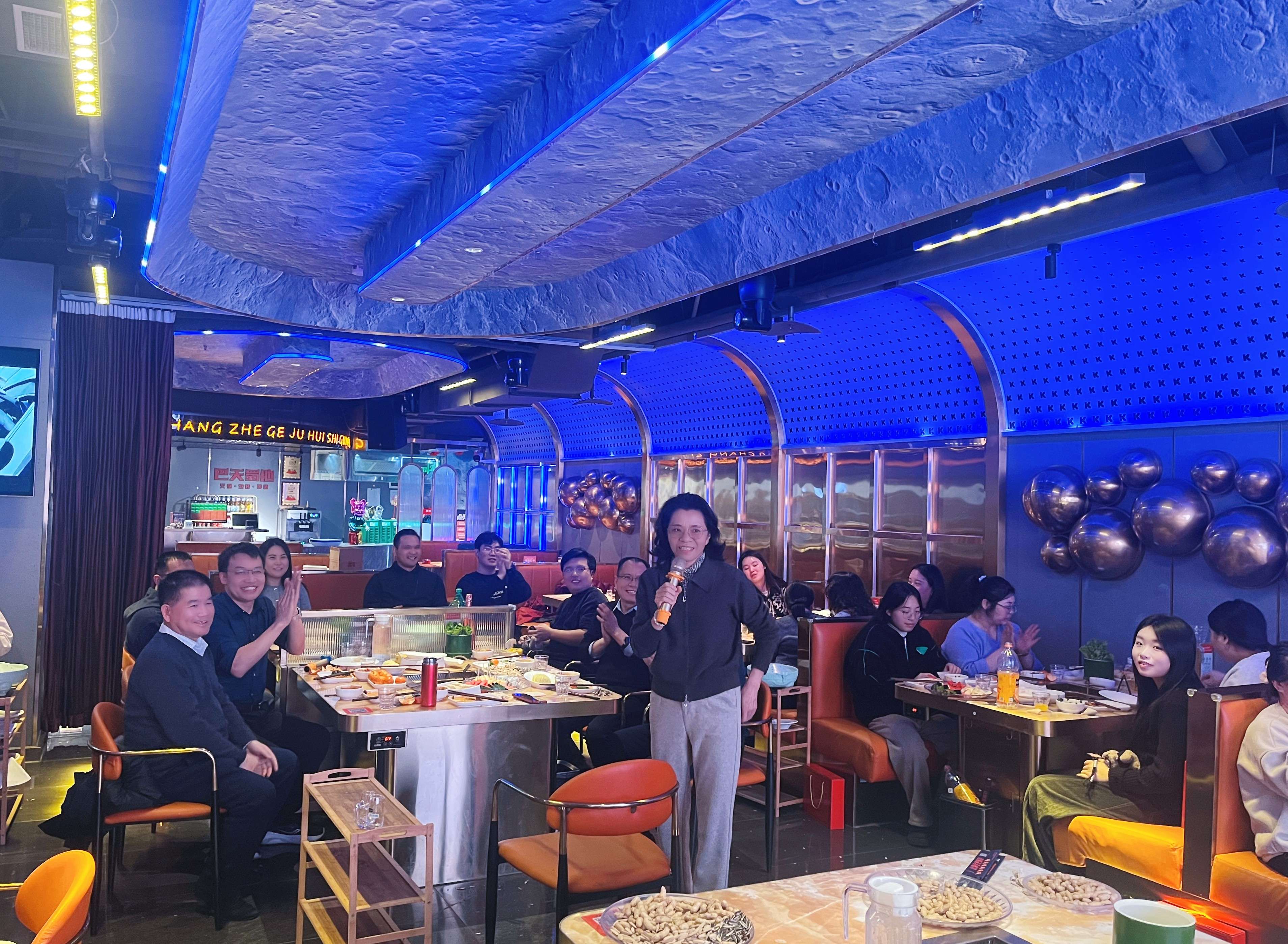 隨著酒會進程持續(xù),精彩不斷涌現(xiàn),酒席間,“數(shù)字炸彈” 游戲和歌曲演唱等節(jié)目表演陸續(xù)登場,現(xiàn)場洋溢著溫馨喜慶、暖意融融的氛圍。在聯(lián)歡酒會接近尾聲的時候,劉秒董事長帶領(lǐng)大家共同合唱《自由飛翔》,同時,向奮斗在全國各地的員工及其家屬送上新年的祝福,恭祝大家新年鴻運、身體健康、工作順利、幸福安康!迎新春聯(lián)歡酒會在悠揚的《明天會更好》的歌聲中圓滿落下帷幕。